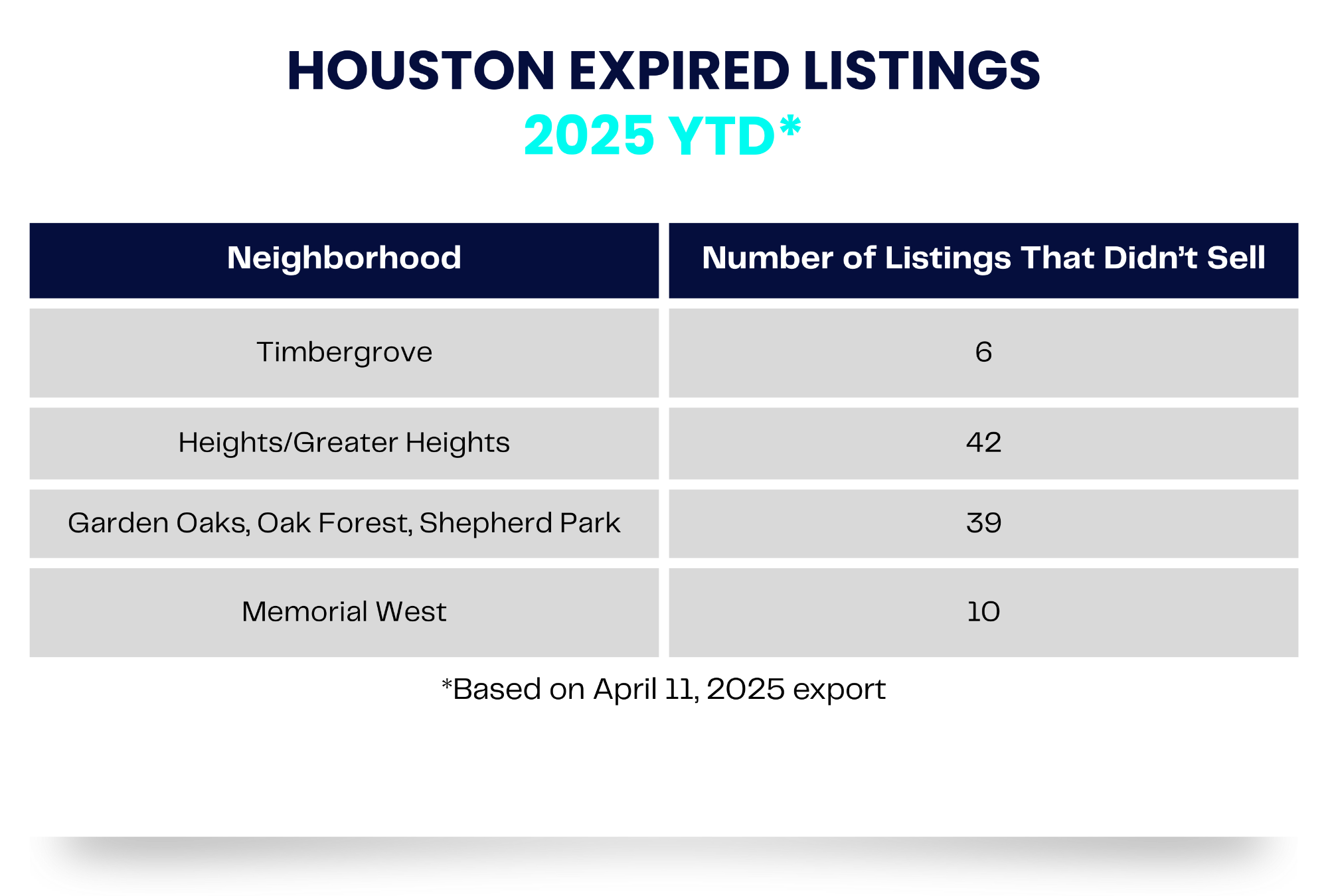 We see new expired listings showing up in neighborhoods all over Houston every day, and these are in great Houston neighborhoods like the Heights, Timbergrove, Oak Forest, and even Memorial. These home owners have experienced the same disappointment as you.